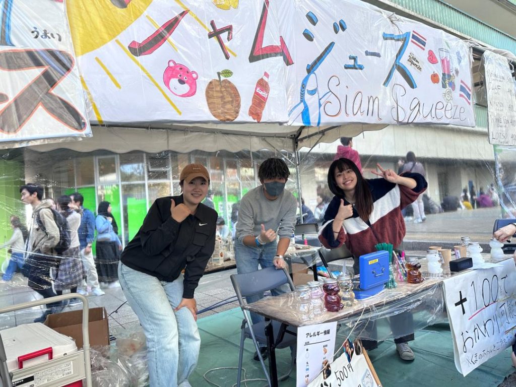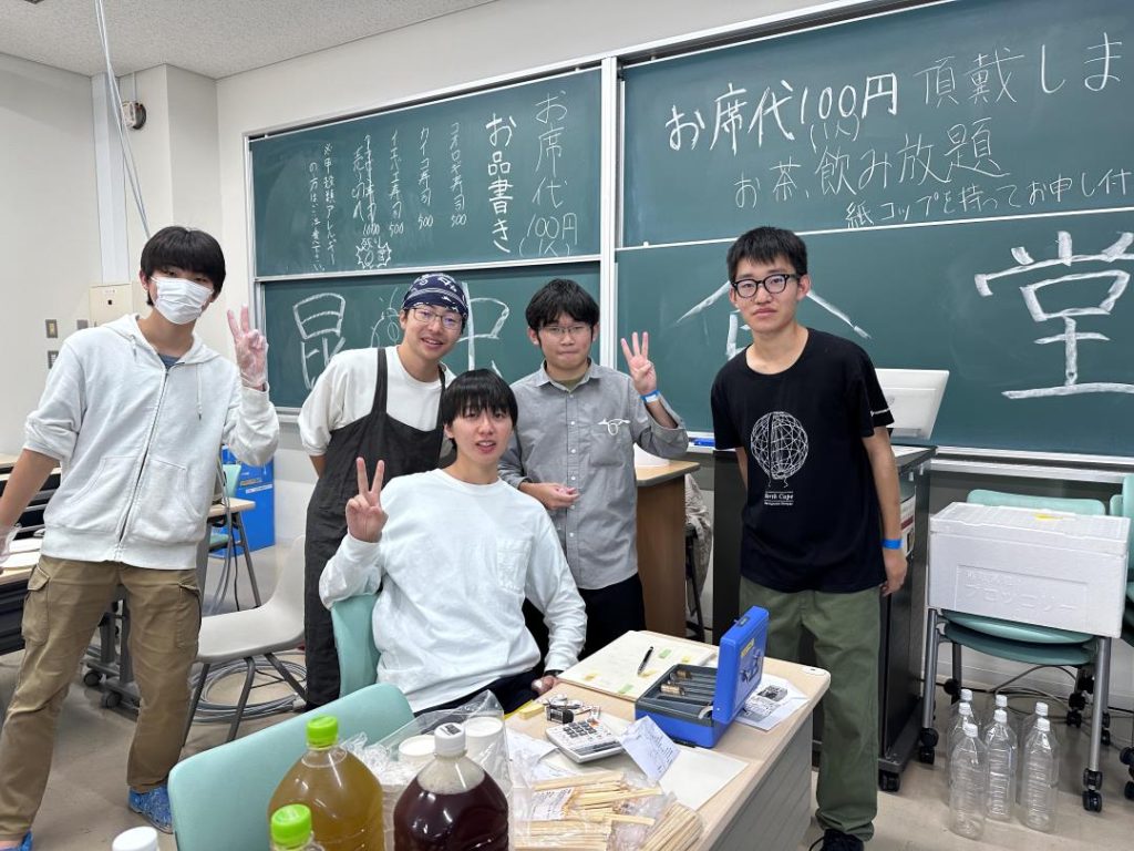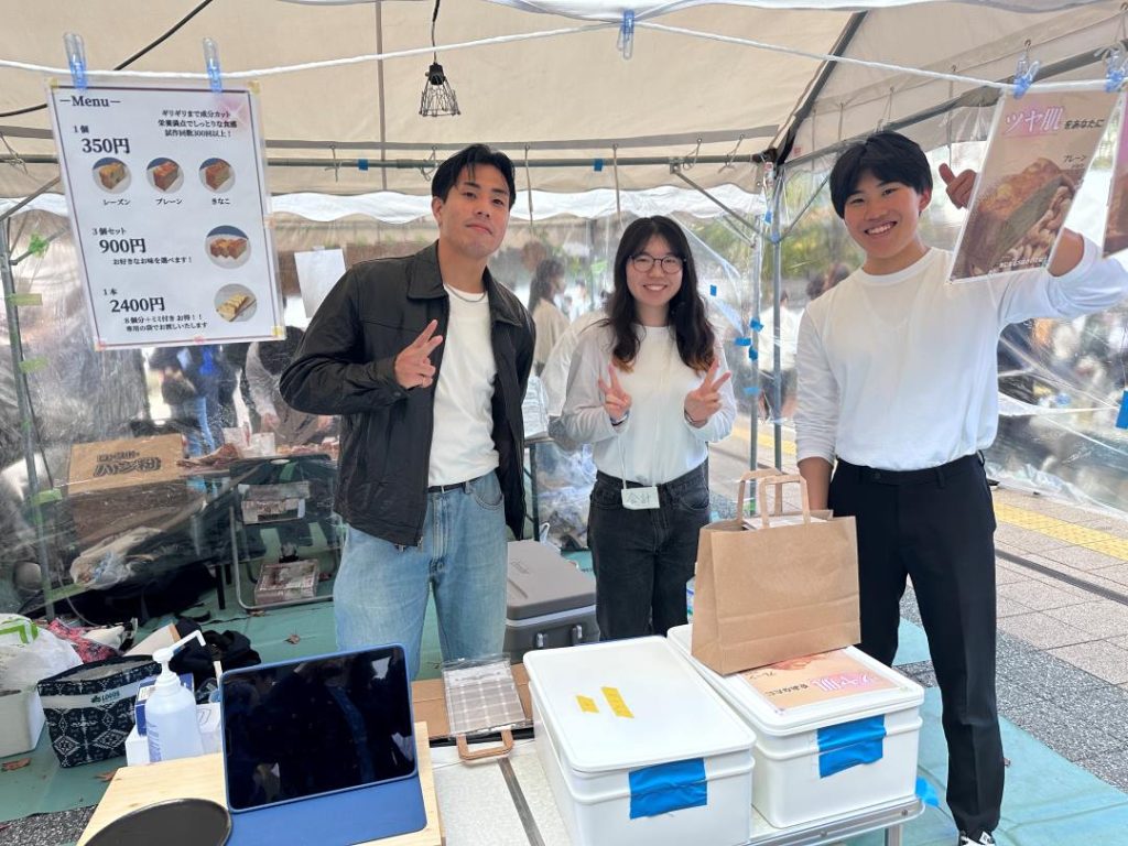 今年度の九大祭では、初日は悪天候のためテント企画が中止となりましたが、各チームが試行錯誤しながら販売を行いました。二日目は天候の影響もなく、大変賑わいました。