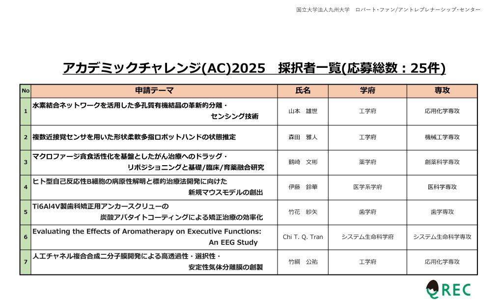 2025年度アカデミックチャレンジ(AC)採択者決定