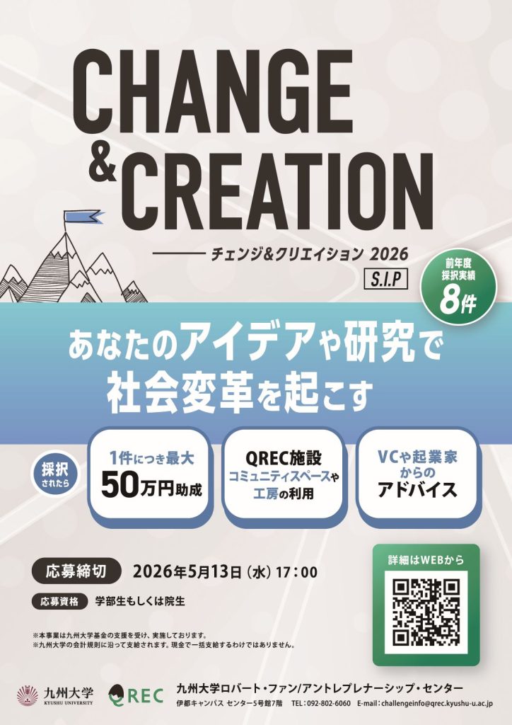 ※本プログラムは、2025年以前「チャレンジ&クリエイション」として実施していましたが、2026年度より「チェンジ&クリエイション」に名称を変更しました。